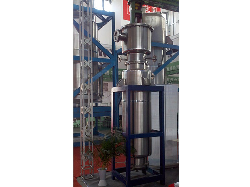 刮板式薄膜蒸發(fā)器是利用高速旋轉(zhuǎn)將液體分布成均勻薄膜而進(jìn)行蒸發(fā)或蒸餾的一種高效蒸發(fā)、蒸餾設(shè)備,也可進(jìn)行脫臭、脫泡反應(yīng)及加熱、冷卻等單元操作。本設(shè)備采用離心式滑動溝槽轉(zhuǎn)子,是目前國外最新結(jié)構(gòu)蒸發(fā)器,在流量很小的情況下也能形成薄膜,在筒體蒸發(fā)段內(nèi)壁表面附著處理液中的淤積物可被活動刮板迅速移去,和固定間隙的刮板蒸發(fā)器相比,蒸發(fā)量可提高40-69%。